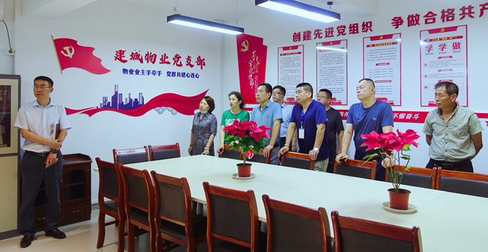 話黨建、共交流、拓思路、謀發(fā)展。為進(jìn)一步加強(qiáng)黨建互動,積極交流先進(jìn)經(jīng)驗,切實提高集團(tuán)黨建工作水平,7月21日,集團(tuán)黨委副書記孫曉東同志、黨委委員呂文秀同志帶隊,組織集團(tuán)黨務(wù)工作者來到建城物業(yè)公司,學(xué)習(xí)觀摩紅色物業(yè)黨建陣地。